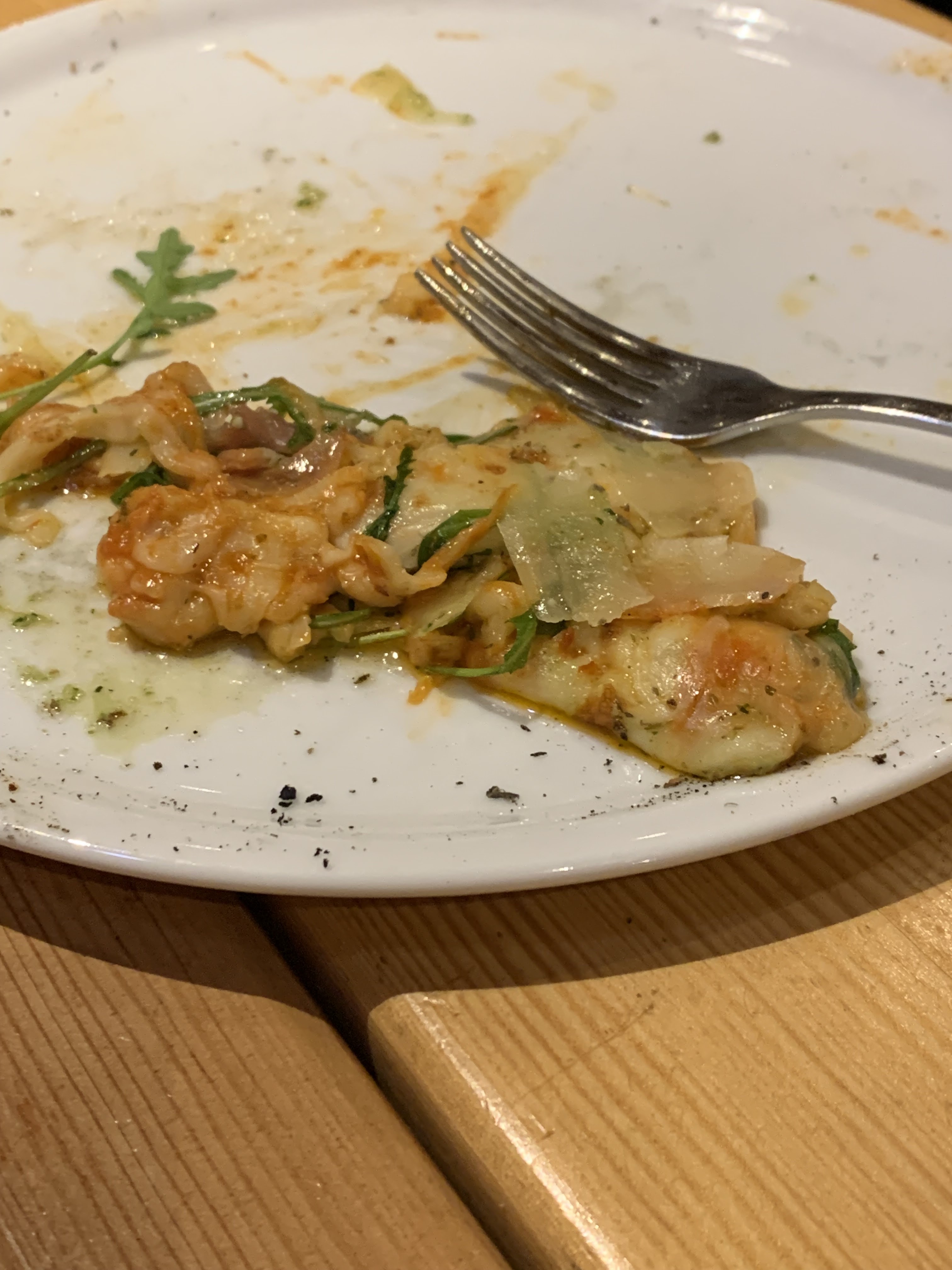 J'ai trouvé qu'il y avait beaucoup trop de fromage sur la pizza et il n'était pas totalement cuit. L'ensemble de la pizza était sans réelle saveur et j'ai cessé de manger lorsque je me suis aperçue que la pâte n'était pas cuite à certains endroits. Je l'ai signalé au serveur, qui j'espère a transmis au cuisinier, car l'expérience était hyper décevante. Le rapport qualité prix n'est absolument pas au rdv du coup (15€ la pizza). Si vous commandez une pizza, j'espère que vous aurez une meilleure expérience que moi 🤞