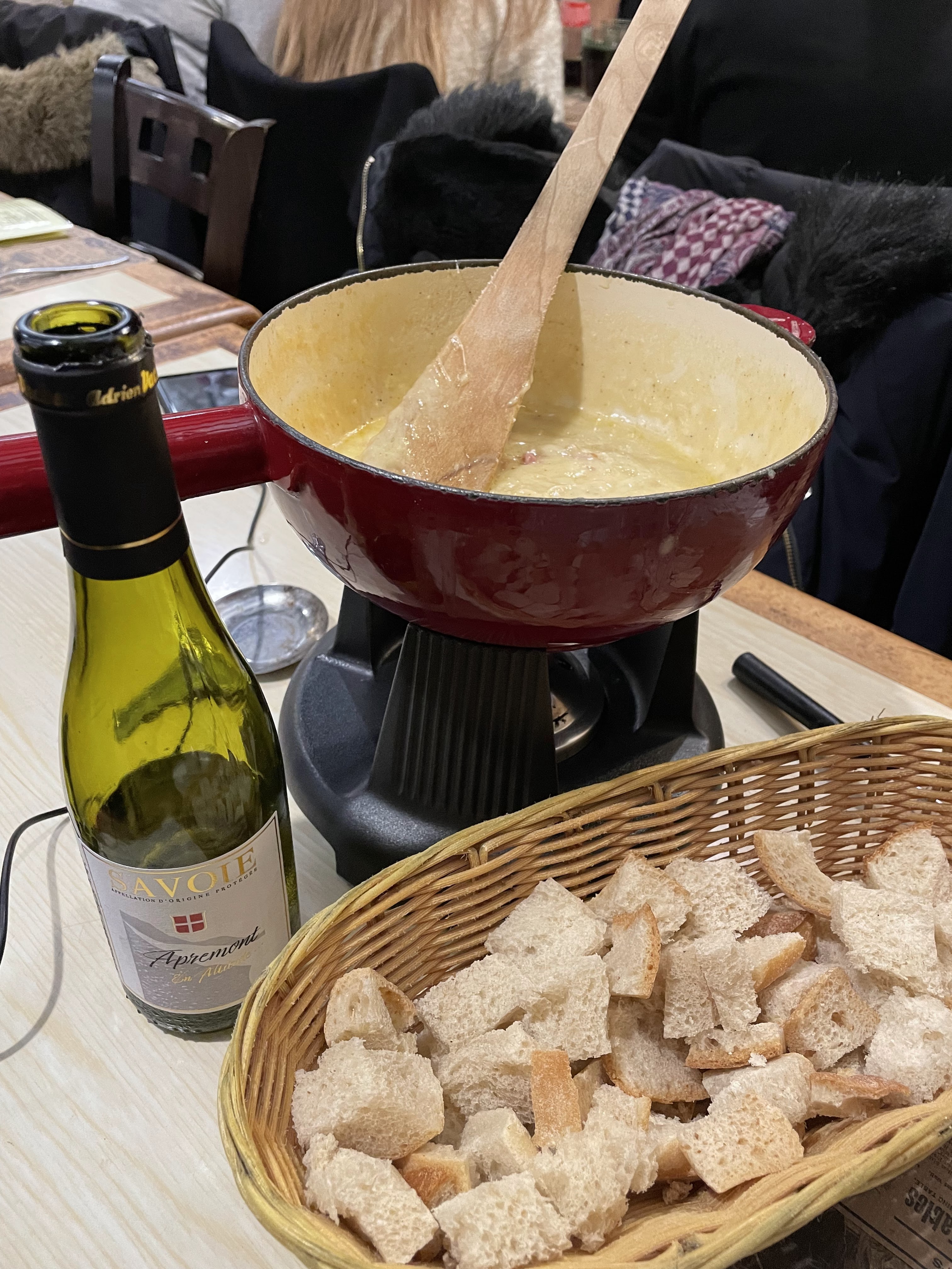 Très bon restaurant, le cadre est superbe, l'ambiance est chaleureuse... Mes amis et moi avons été très bien accueillis par l'équipe malgré l'affluence :) Nous nous sommes régalés d'une fondue savoyarde et d'une fondue au bleu (que je vous recommande chaudement), accompagnées d'un petit blanc Savoyard de derrière les fagots... En deux mots comme en cent, je recommande !
