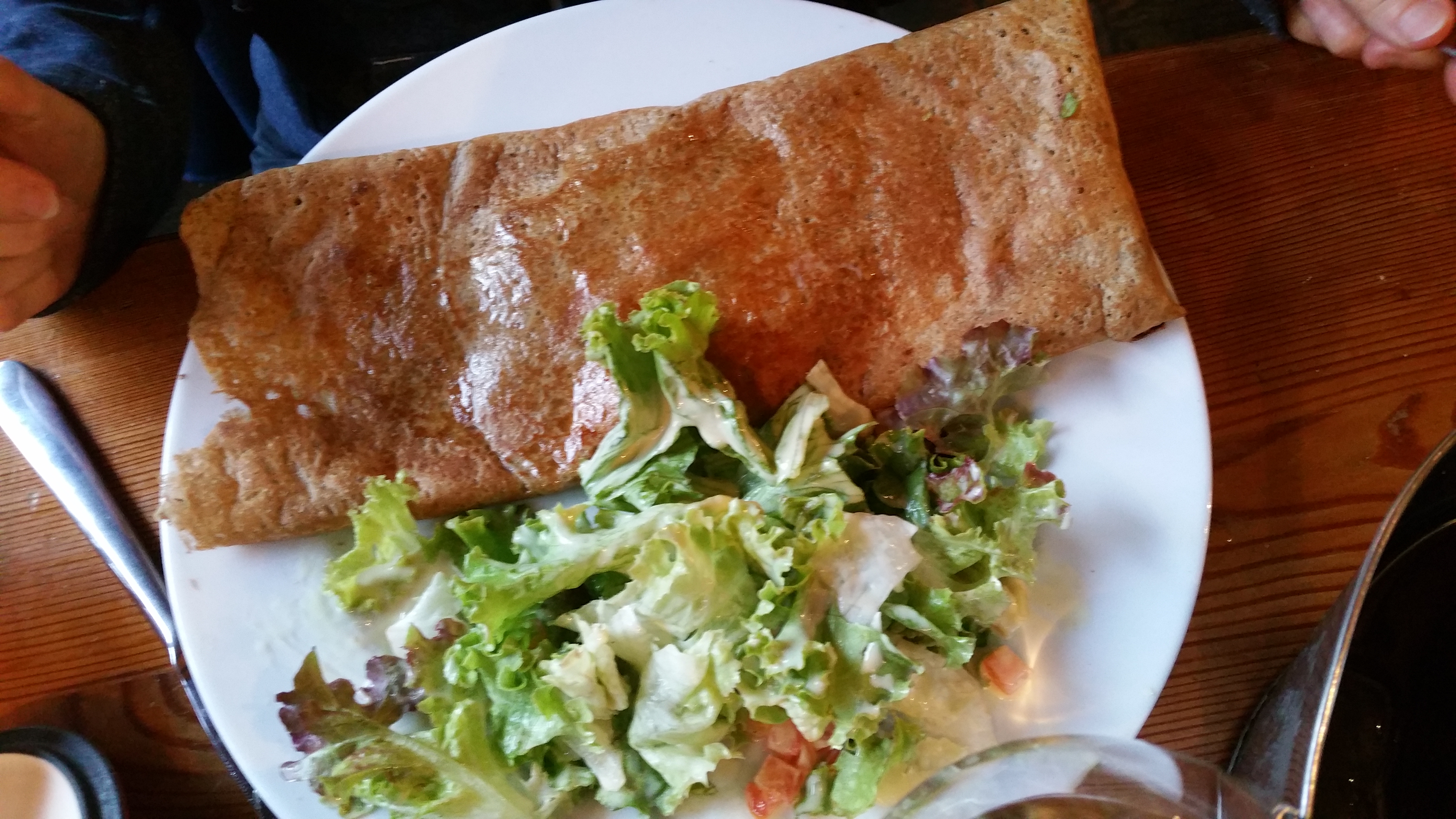 Crêpes pas mauvaise mais au vu des quantités de garnitures plus que minimaliste pour des crêpes à 11euros je ne conseille pas ce restaurant . Dommage car le décors est plutôt sympa .